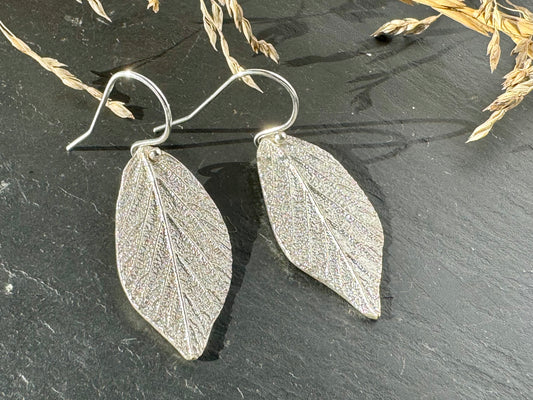 Handmade Fine Silver Bramble Leaf Dangly Earrings