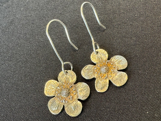 Daisy dangly earrings - sterling silver and 24k gold detail
