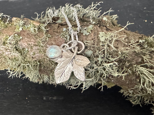 Silver Ivy Leaf and Moonstone pendant