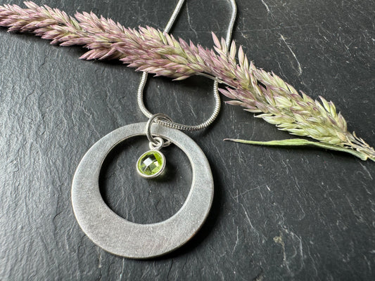Handmade silver circle and gemstone pendant necklace