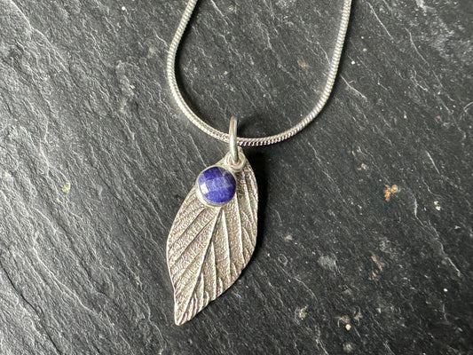 Bramble leaf and gem pendant