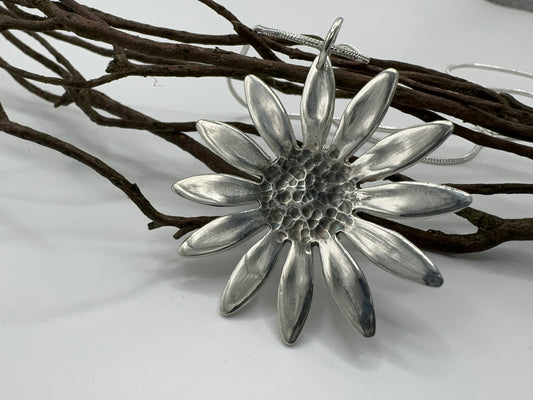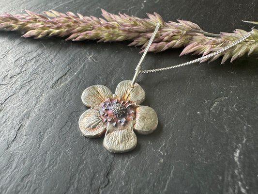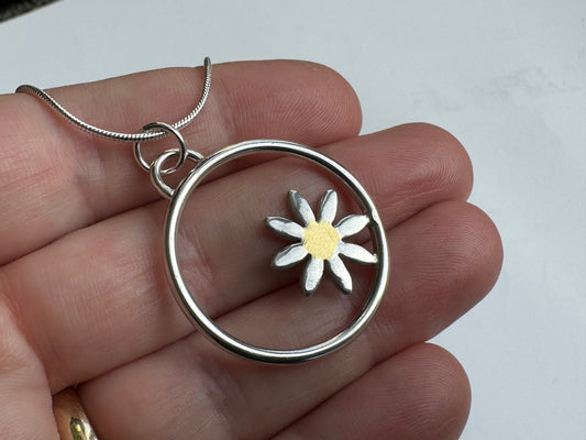 Daisy in hoop pendant - sterling silver and 24k gold detail