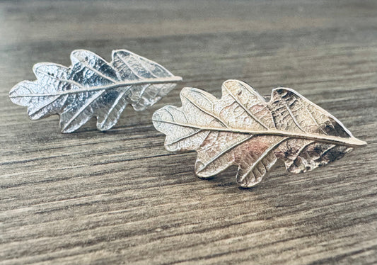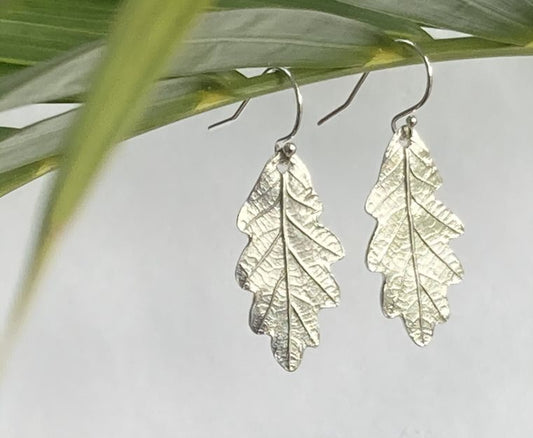 Handmade Fine Silver Baby Oak Leaf dangle earrings
