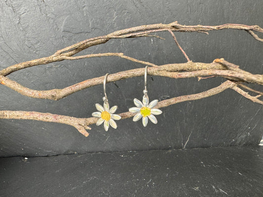 Daisy dangly earrings - sterling silver and 24k gold detail