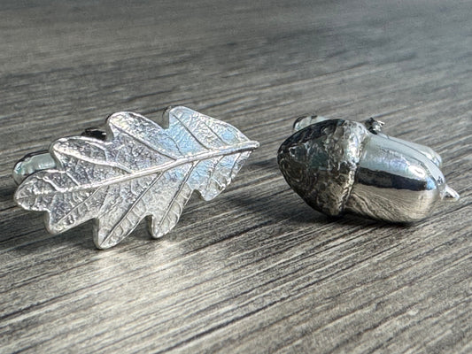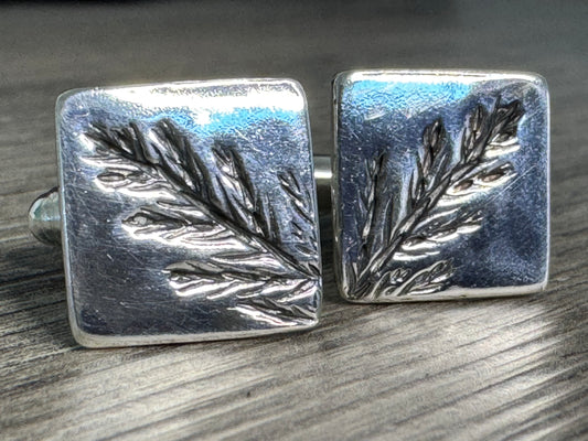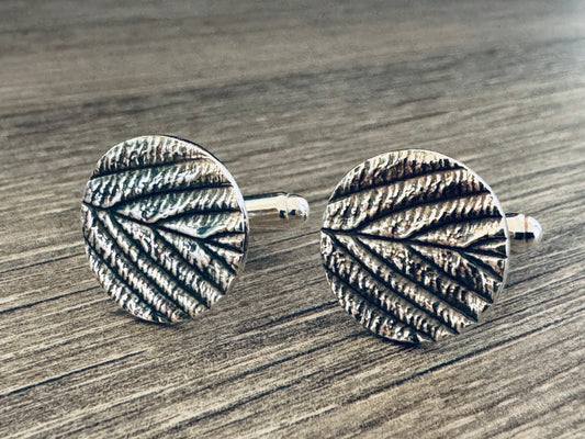 Hydrangea Leaf Pattern Round Silver Cuff Links