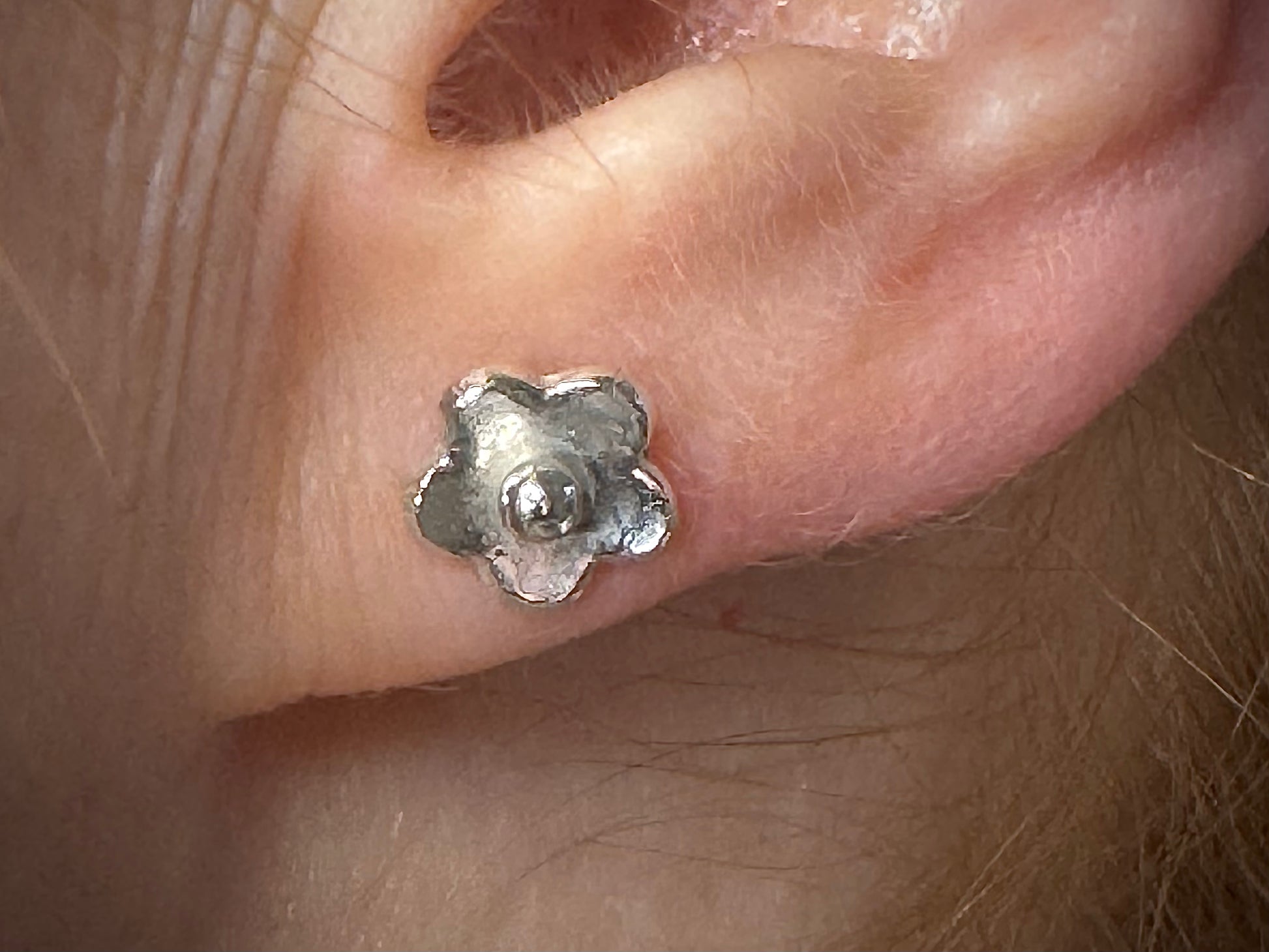Bringing this pretty, dainty, little flower into my collection as cute stud earrings. Handmade from both recycled fine (999) and sterling (925) silver.